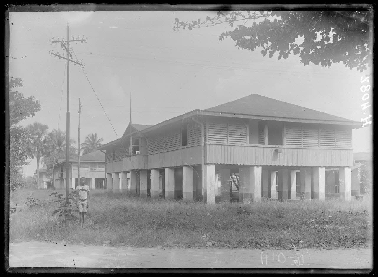 Douala. Immeuble bâti sur pilotis, rue du Roi Georges. [légende d'origine]