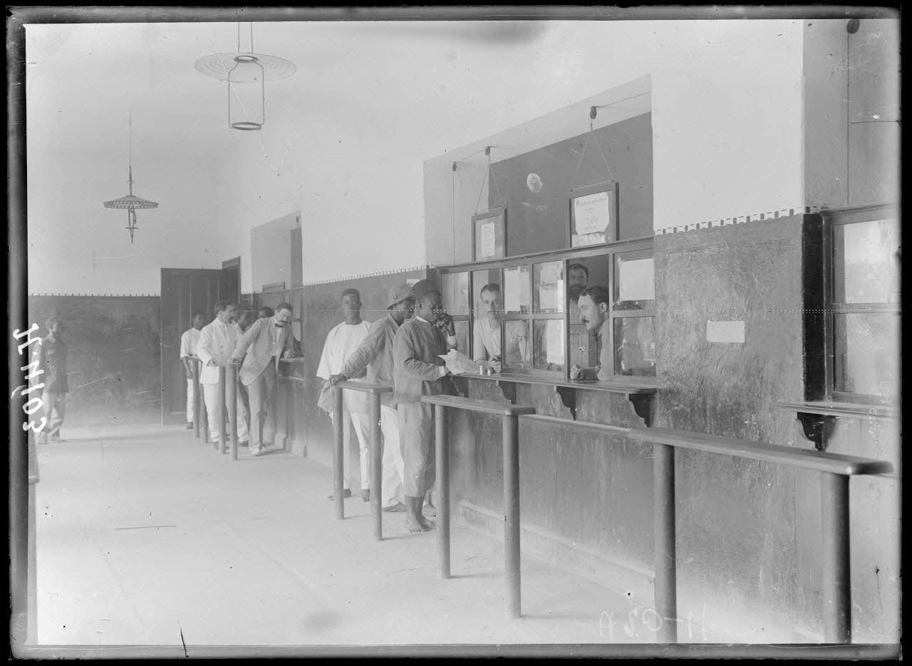 Architecture à Douala en 1916, activités portuaires et ferroviaires.