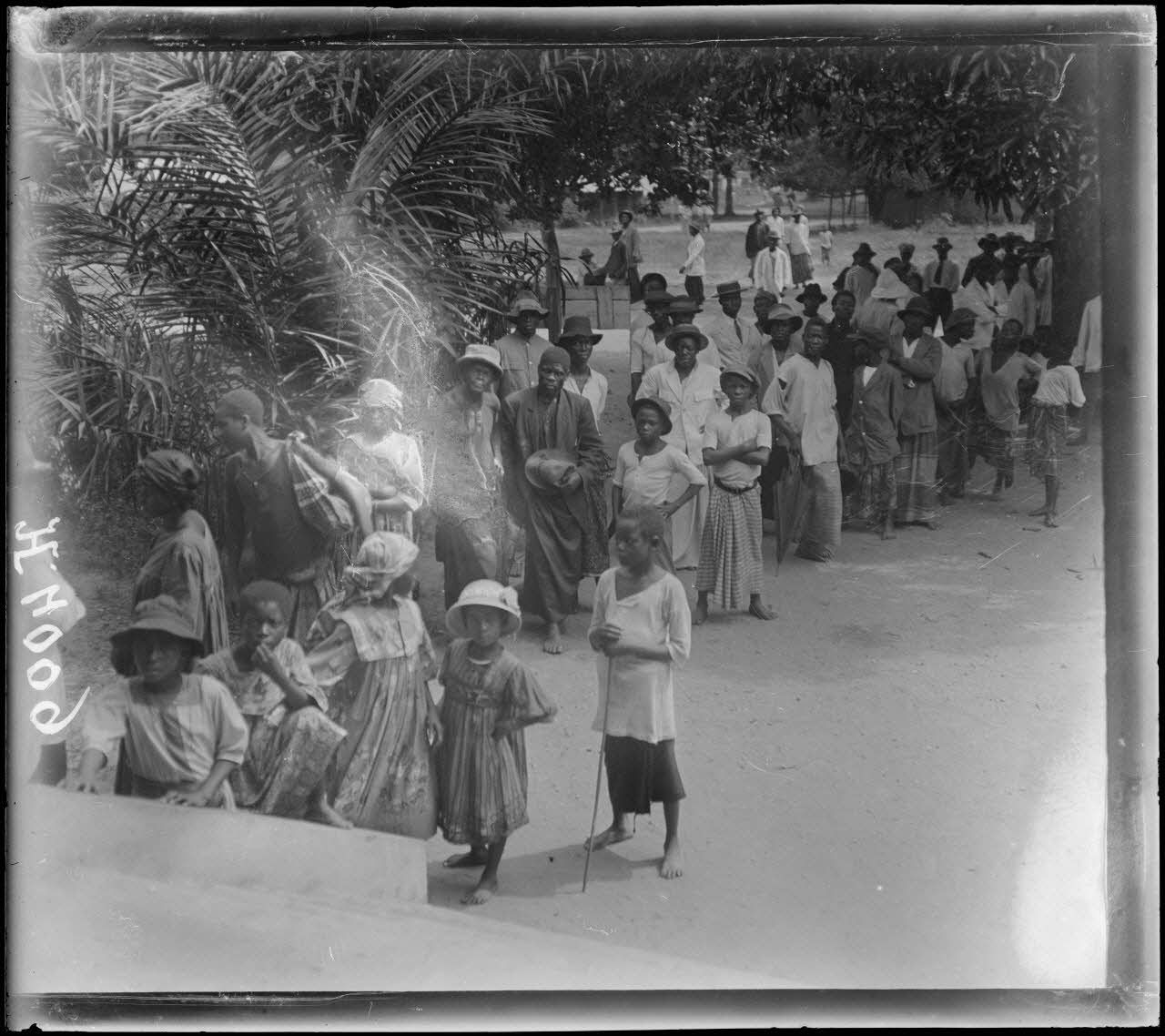 Douala. Indigènes regardant une séance de sorcellerie ; la chèvre qui doit être enlevée.