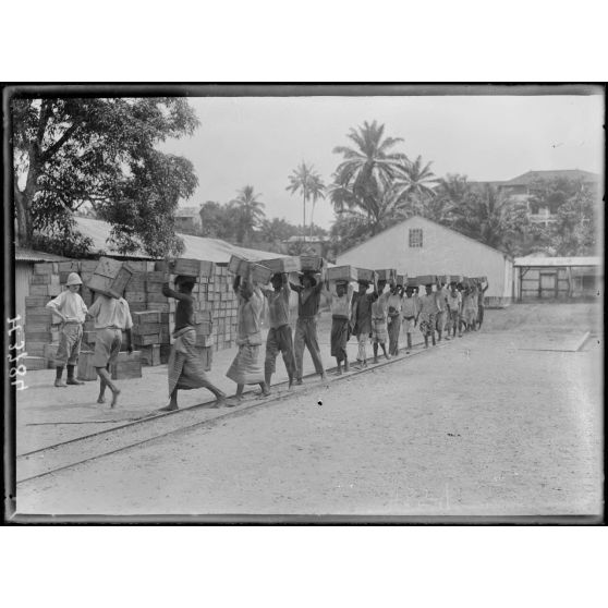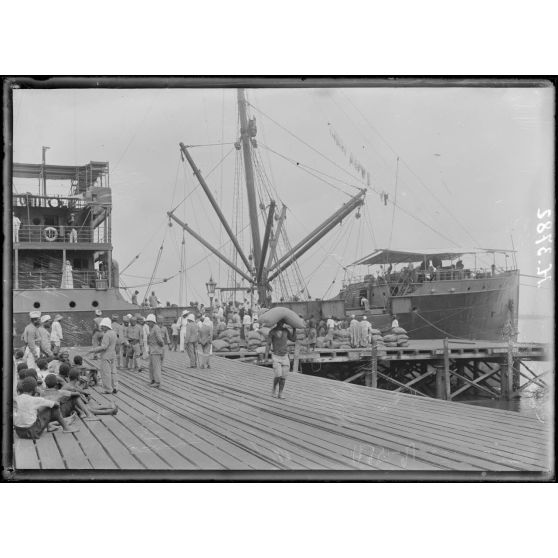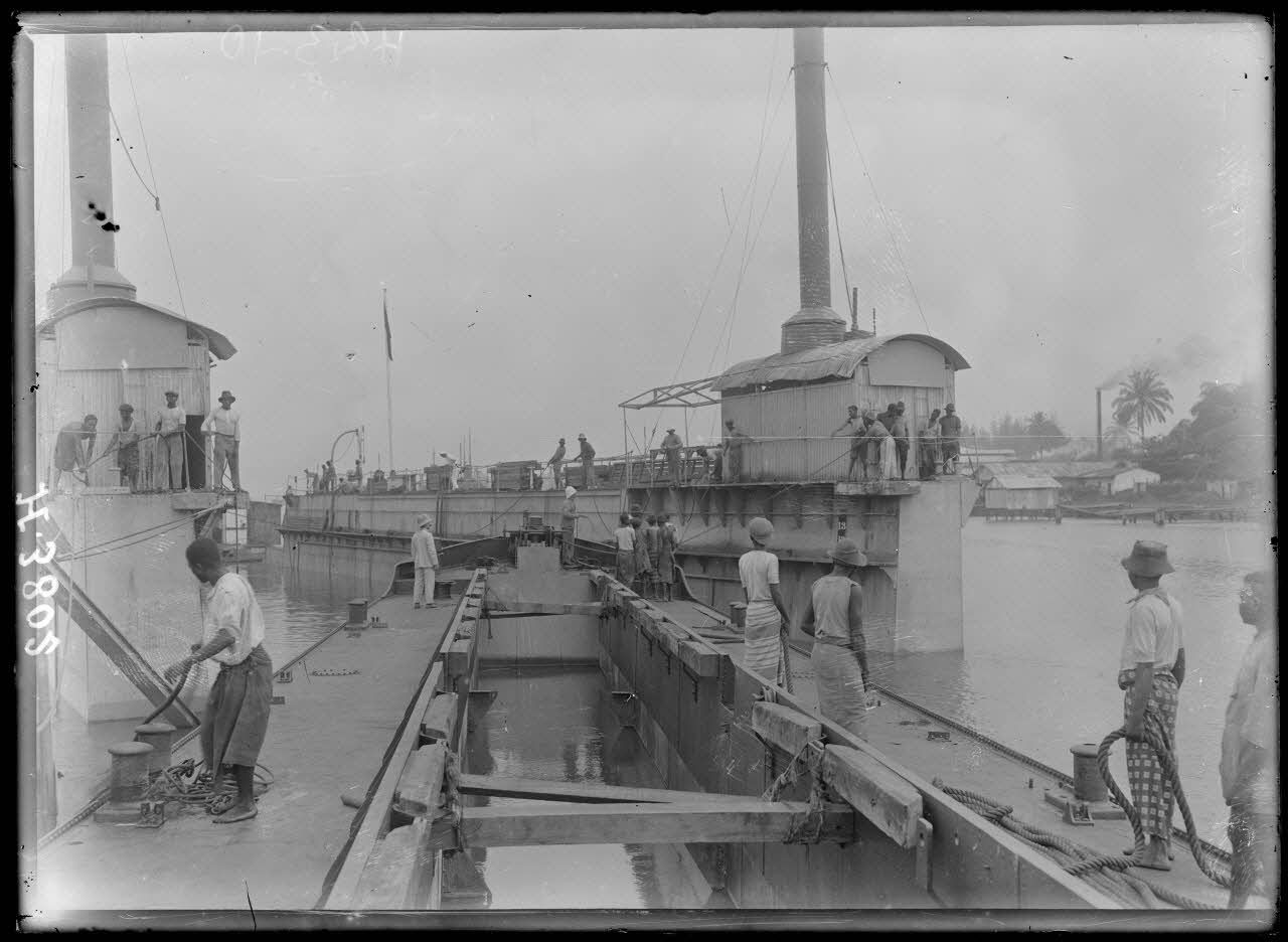 Douala. Port. Chaland entrant dans le dock flottant. [légende d'origine]