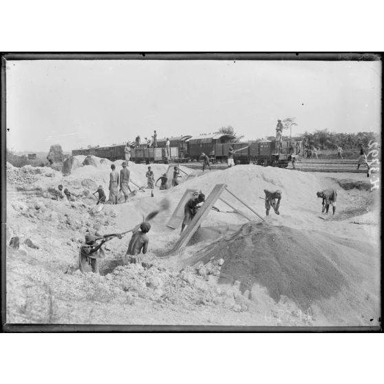 De l'autre côté du fleuve, à Bonabéri, on extrait du sable d'une carrière.