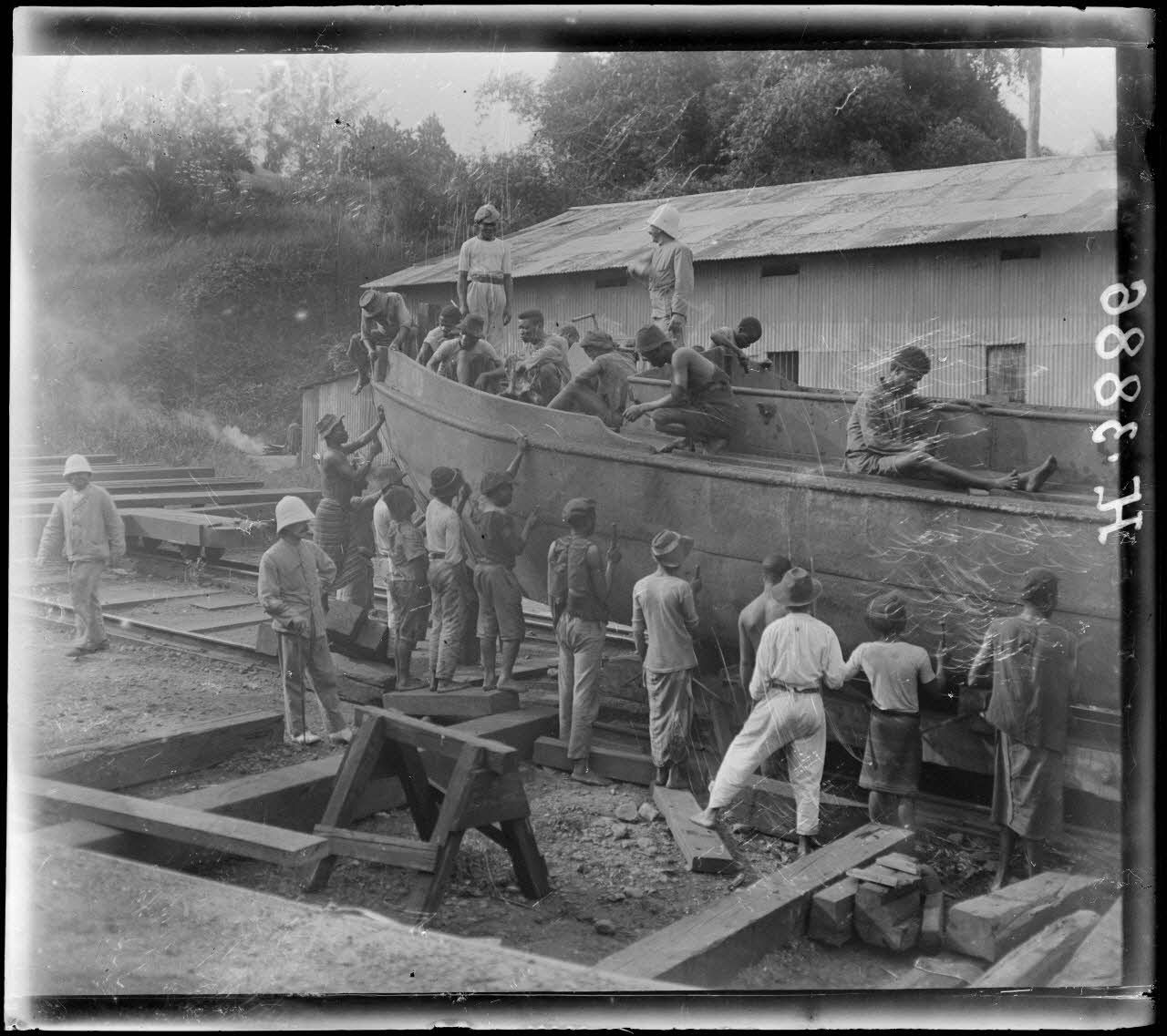 Sur le port, des chalands sont réparés.