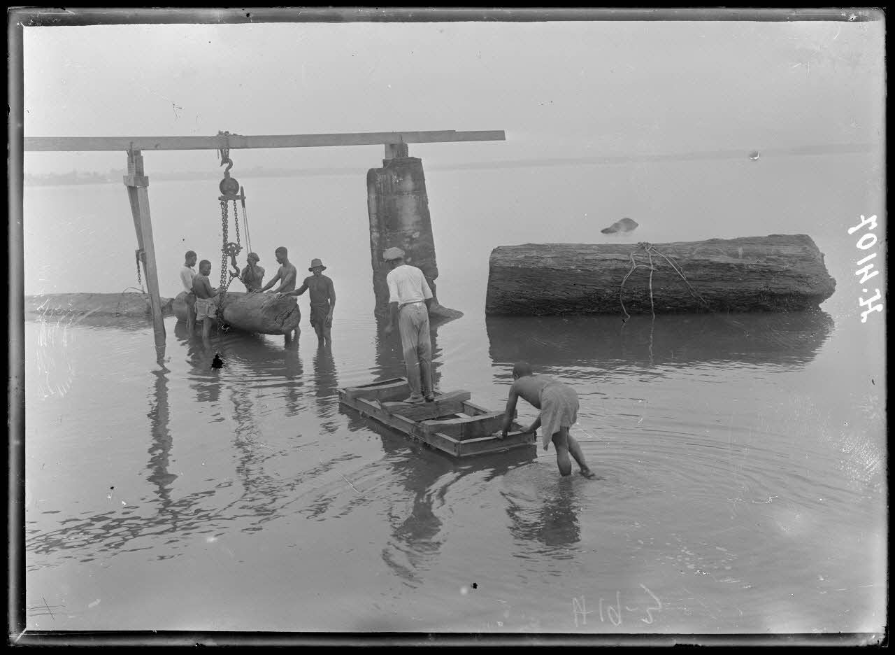 Douala. Scierie. La bille mise sur un chariot. [légende d'origine]