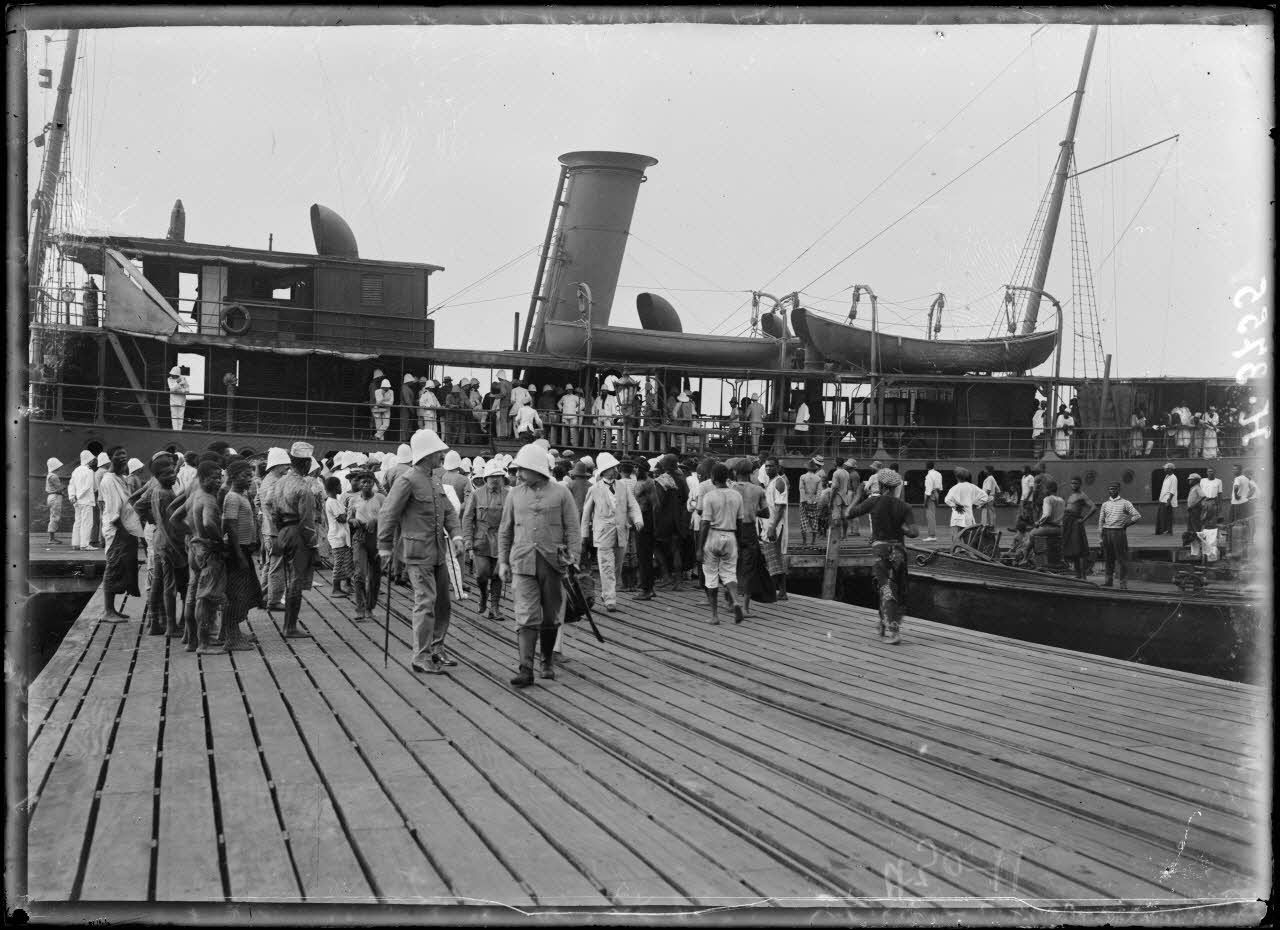 Douala. Sur le wharf. Arrivée de passagers de France. [légende d'origine]