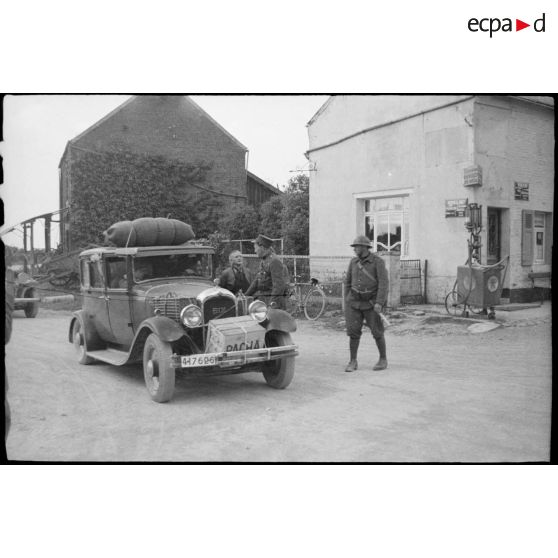 A un poste frontière, un douanier belge et un soldat français contrôlent le passage des automobiles conduites par des réfugiés. Un caméraman filme les deux hommes. Un camion Berliet GDRA 7 de réquisition (appartenant à un groupe de transport du train) entre en Belgique sous l'oeil d'un gendarme outre-Quiévrain.