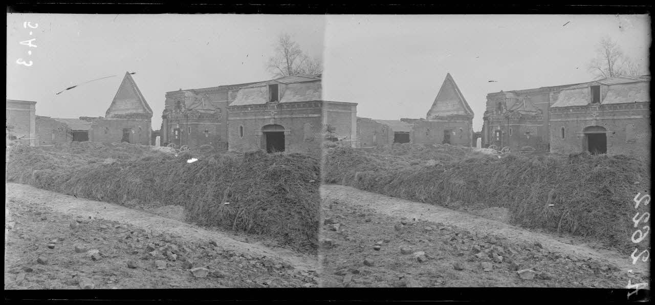- à Gruny (Somme), des maisons et des fermes reconstruites par des volontaires américains de l'"American Red Cross" (Croix rouge américaine) ainsi qu'un tracteur américain (A2575 à A2589),