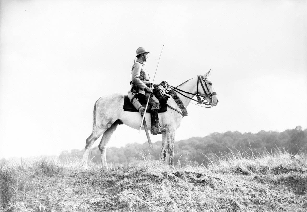 Arrivée au cantonnement d'un peloton de Dragons. Oise, 1916.