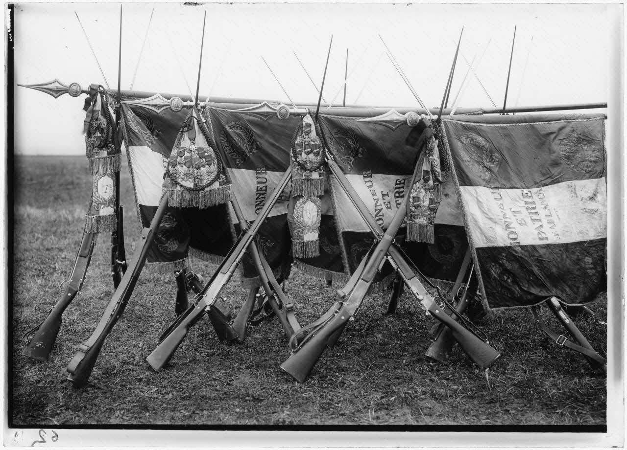 D66-8-54 : Drapeau de la Légion étrangère. Lorraine, 1917. (9 citations) [au centre, le colonel Rollet]