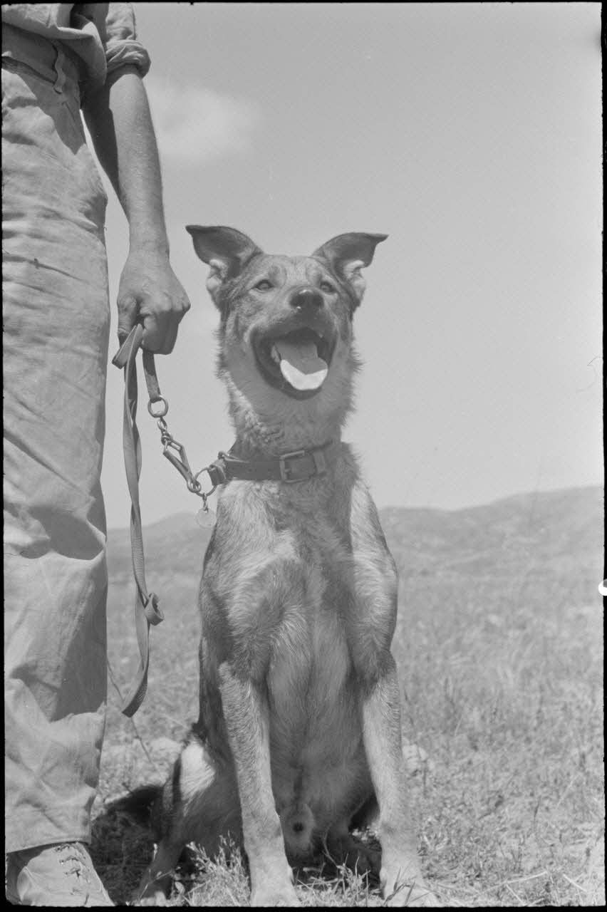 A proximité du terrain d'aviation de Kastelli, le dressage de bergers allemands de la compagnie cynophile.