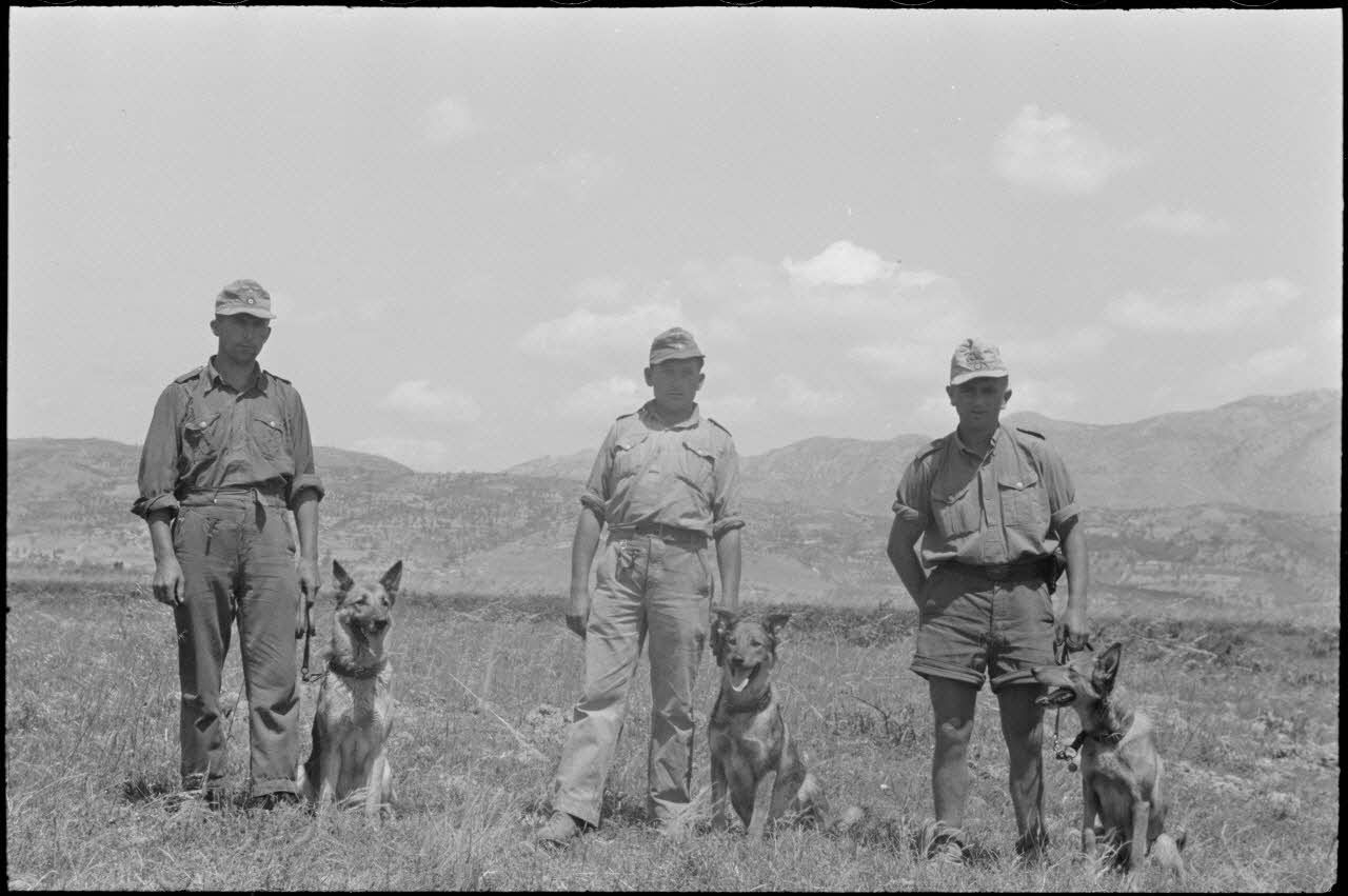A proximité du terrain d'aviation de Kastelli, le dressage de bergers allemands de la compagnie cynophile.