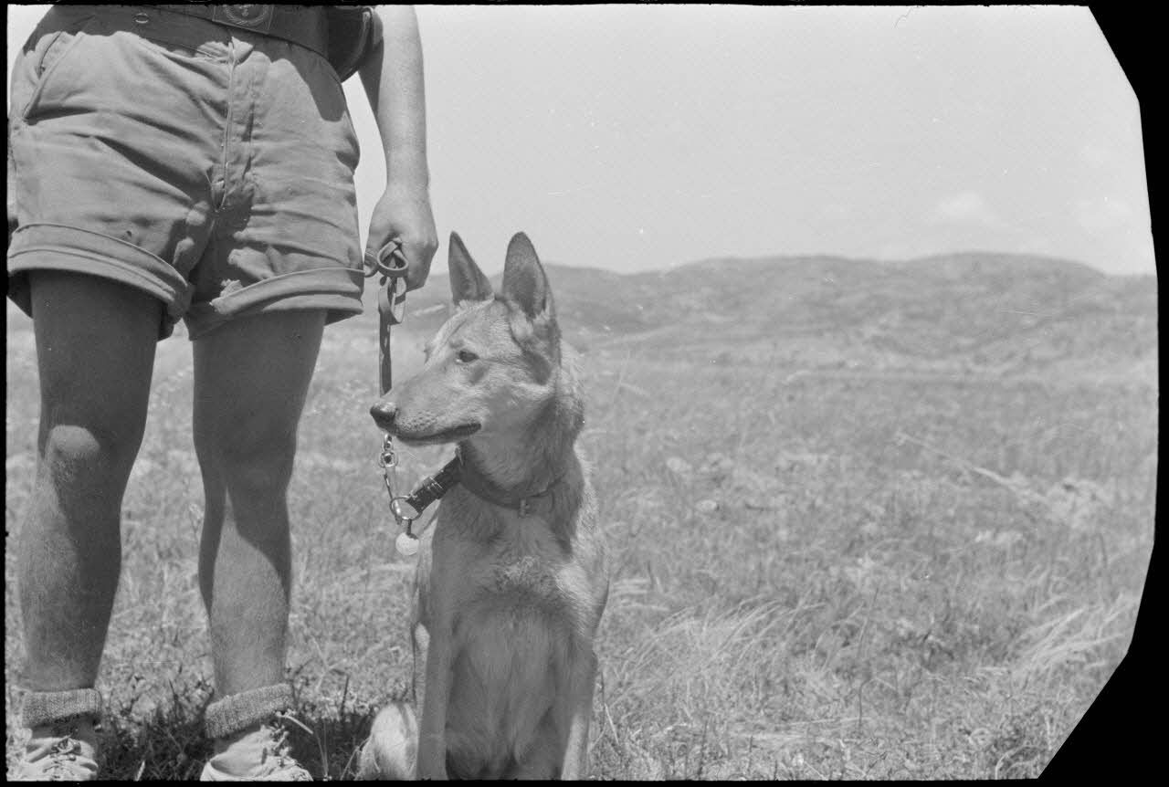 A proximité du terrain d'aviation de Kastelli, le dressage de bergers allemands de la compagnie cynophile.
