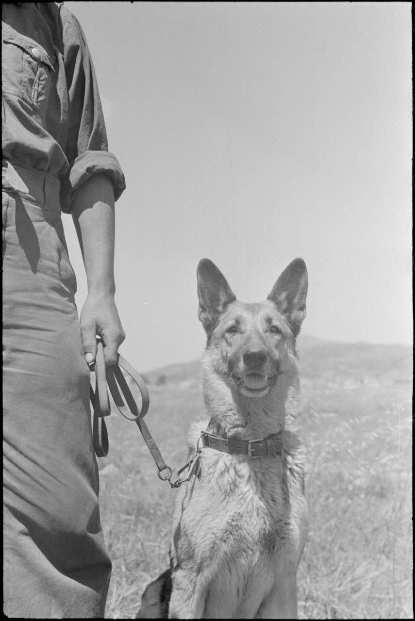 A proximité du terrain d'aviation de Kastelli, le dressage de bergers allemands de la compagnie cynophile.