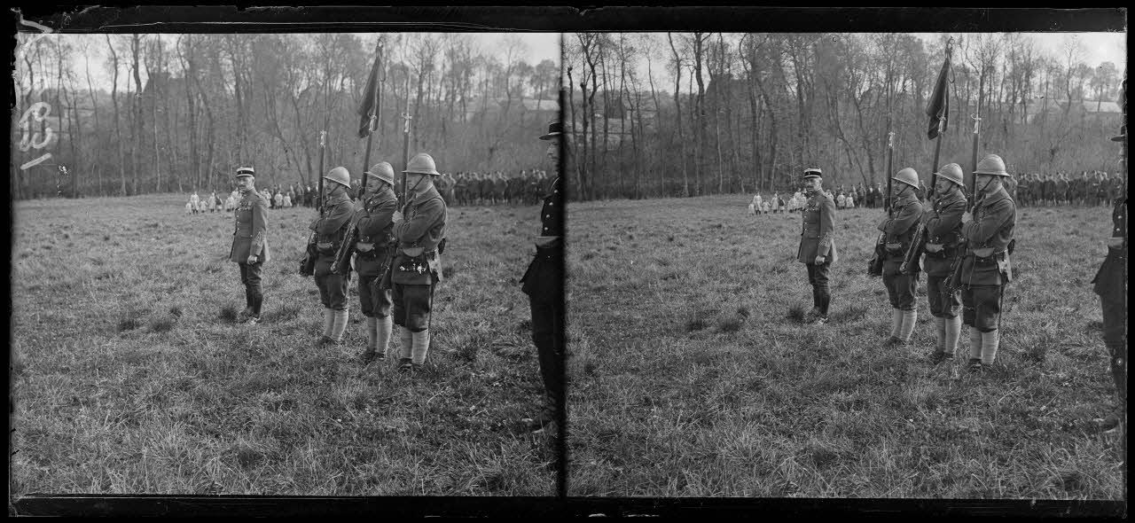 Dromesnil, Somme, 2e bataillon de chasseurs et son commandement. Le commandant Mellier est cité à l'ordre du bataillon. La prise d'armes.