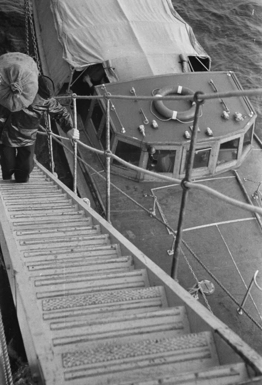 A bord du dragueur de mines allemand surnommé briseur de blocus (Sperrbrecher).