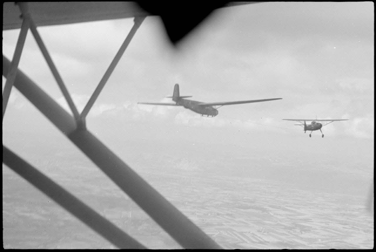 Sur le terrain d'aviation de Valence occupé par le IIIe groupe du Luftlandegeschwader 1, peu avant un vol d'entraînement de jeunes pilotes de planeurs.