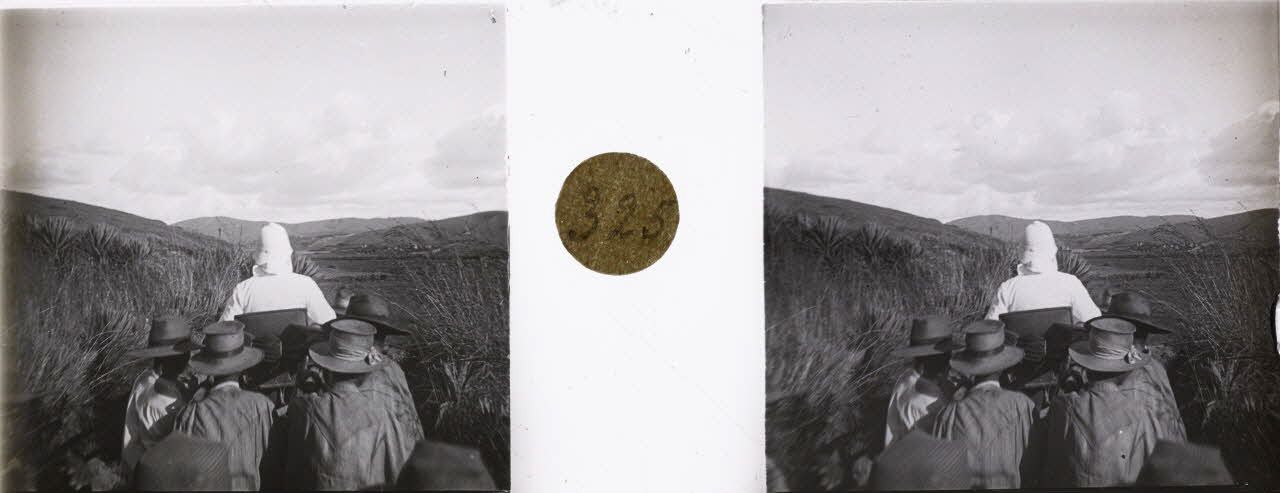 D68-32. René Denis photographie les paysages naturels malgaches lors de ses expéditions cartographiques dans la vallée de la Mandraka à l'est de Manjakandriana. Il circule alors avec deux tirailleurs et deux équipes de quatre bourjanes. Il photographie également le barrage d'Antelomito et son usine hydro-électrique.
