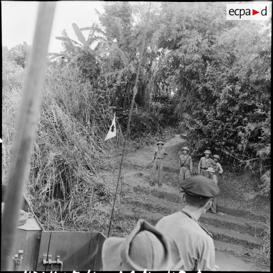 A l'embarcadère de Viet Tri, des soldats de l'Union française et de l'Armée poulaire posent pour la "photo souvenir" lors d'un échange de prisonniers.