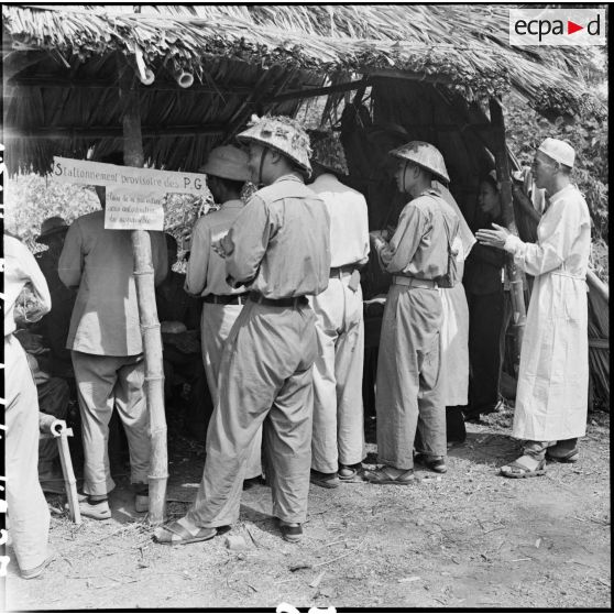 Avant leur libération, des prisonniers de guerre des forces de l'Union française passent par groupe de vingt personnes devant une commission médicale de l'Armée populaire vietnamienne.