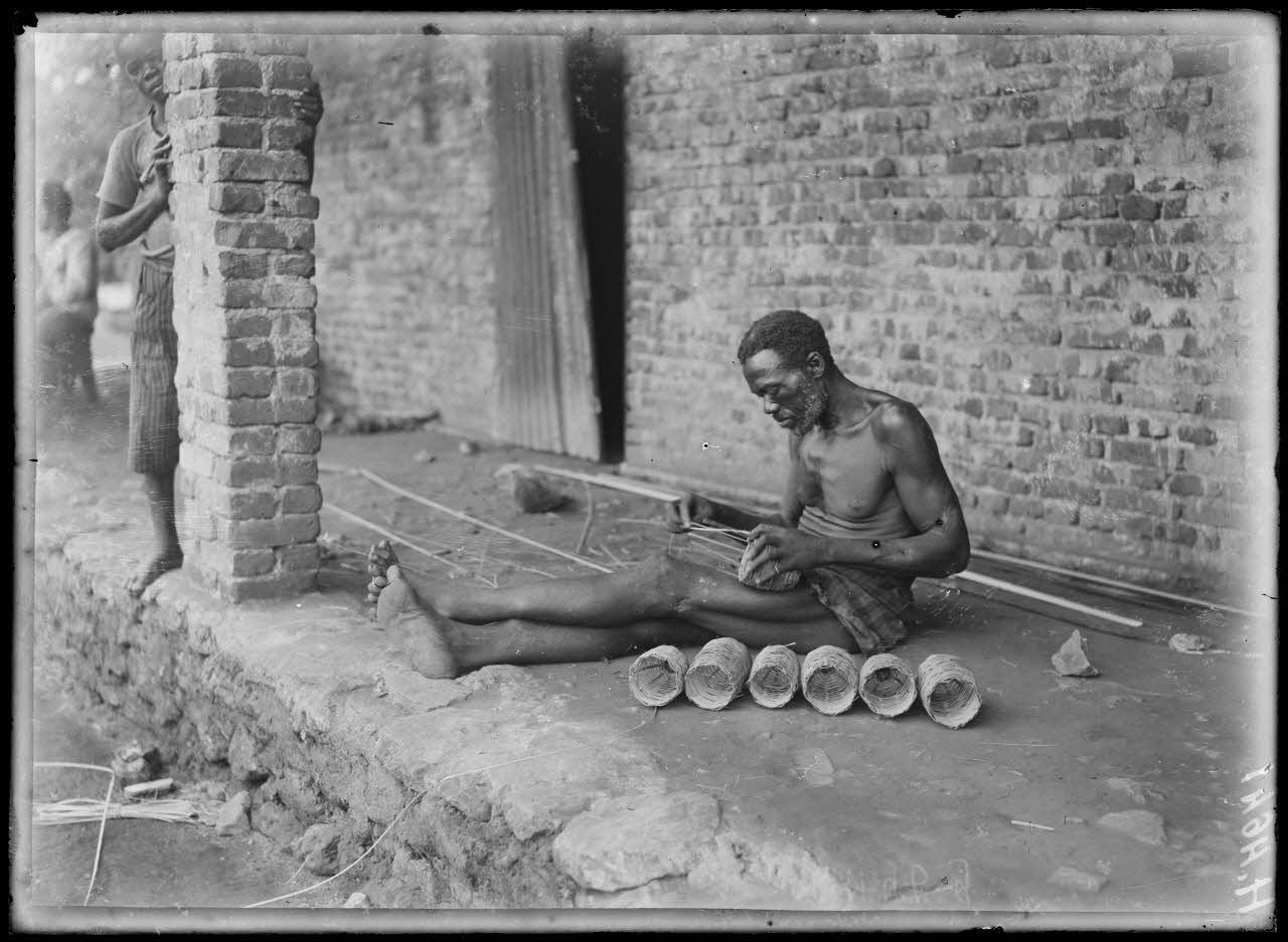 Edéa. Indigène tressant des engins de pêche. [légende d'origine]