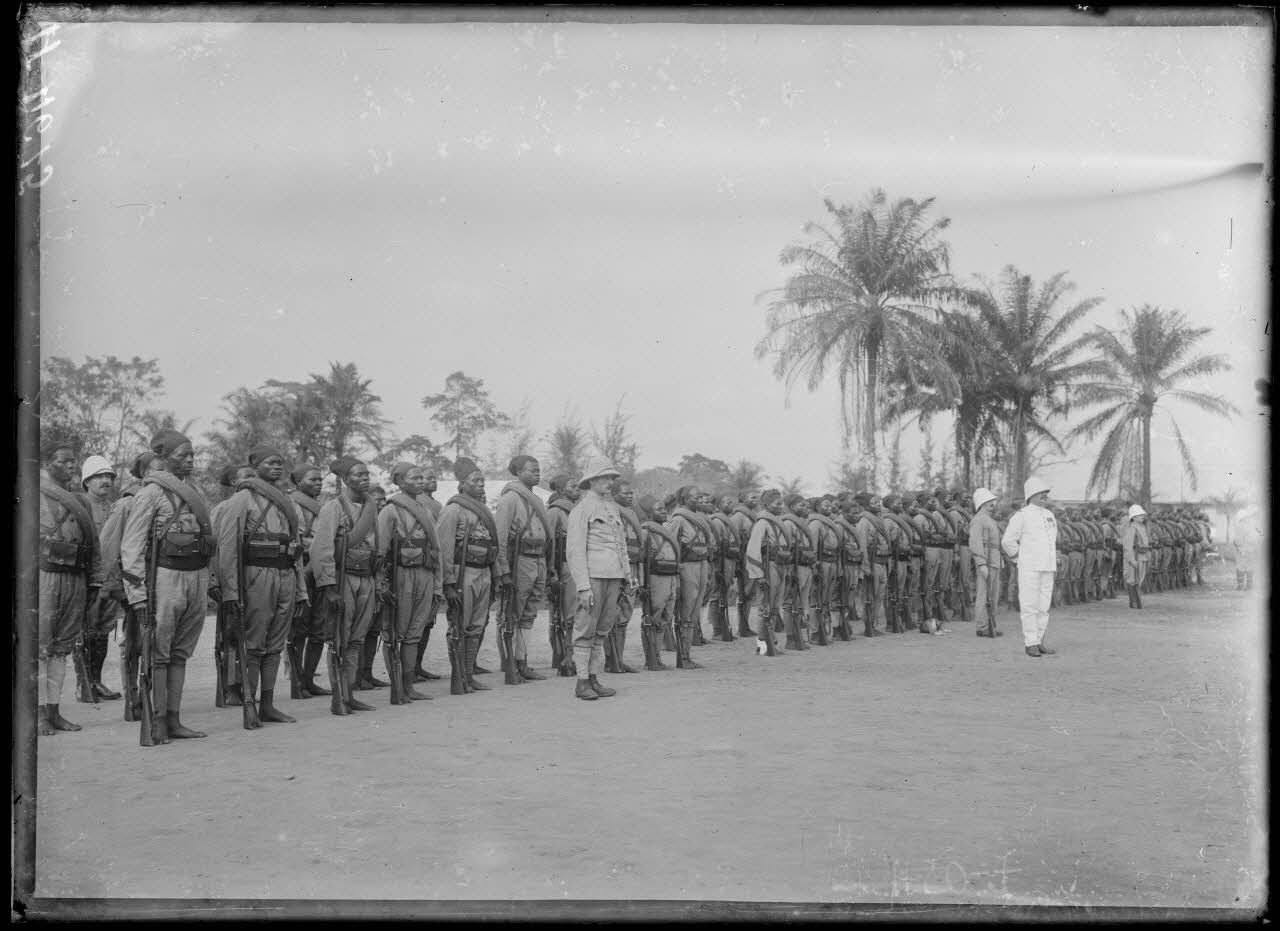 - Un contingent de tirailleurs a établi son campement à Edéa. Le 30 janvier, ils forment une colonne lors d'une manoeuvre aux alentours de la ville.