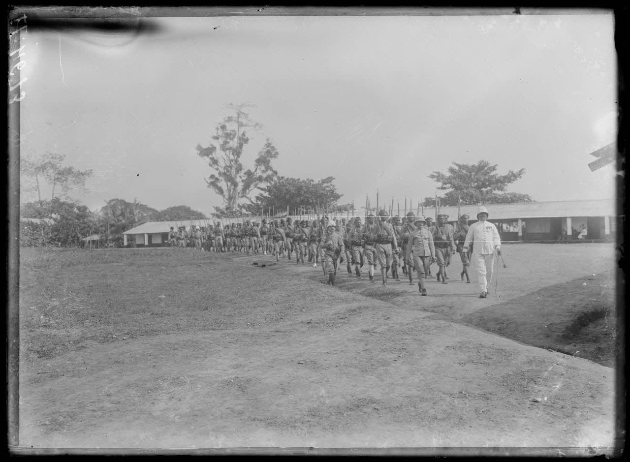 - Un contingent de tirailleurs a établi son campement à Edéa. Le 30 janvier, ils forment une colonne lors d'une manoeuvre aux alentours de la ville.