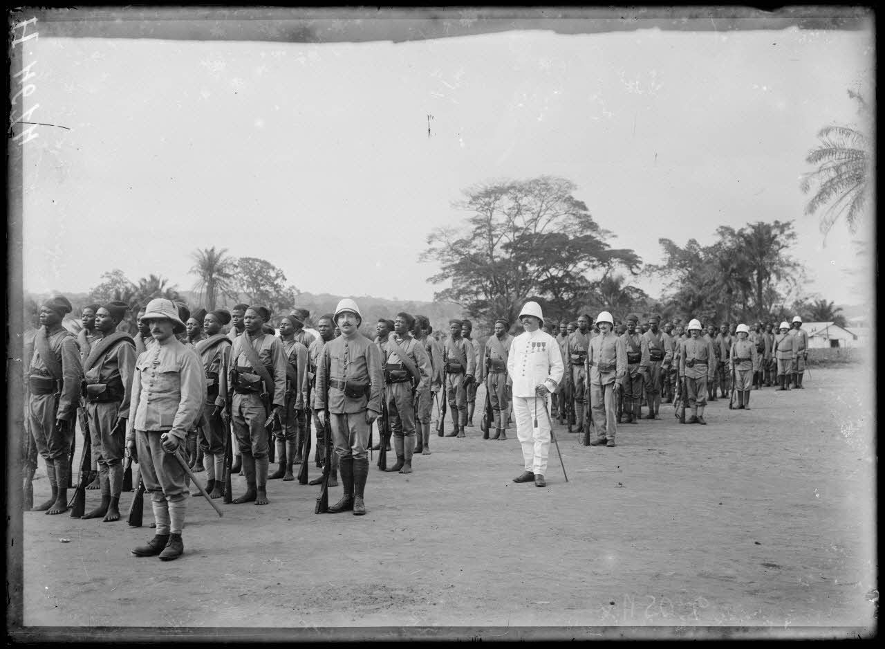 - Un contingent de tirailleurs a établi son campement à Edéa. Le 30 janvier, ils forment une colonne lors d'une manoeuvre aux alentours de la ville.