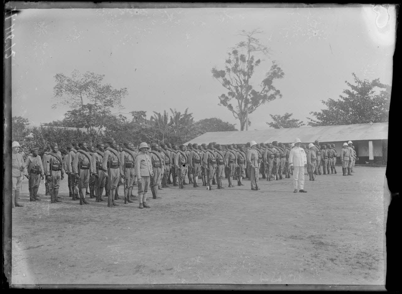 - Un contingent de tirailleurs a établi son campement à Edéa. Le 30 janvier, ils forment une colonne lors d'une manoeuvre aux alentours de la ville.