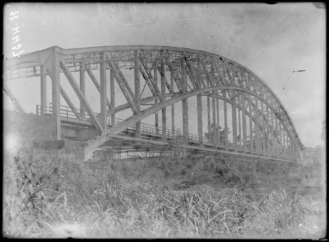 Vue du grand pont métallique du Chemin de fer du Centre, traversant la Sanaga près d'Edéa. Cliché pris vers l'aval.