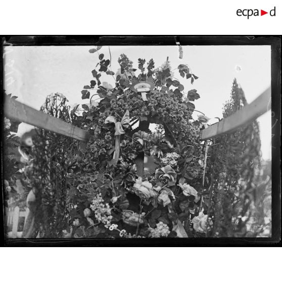 Alsace, cimetière de Moosch - Couronne sur la tombe du Général Serret offerte par la 66° DI (Division d'Infanterie) en 1917.