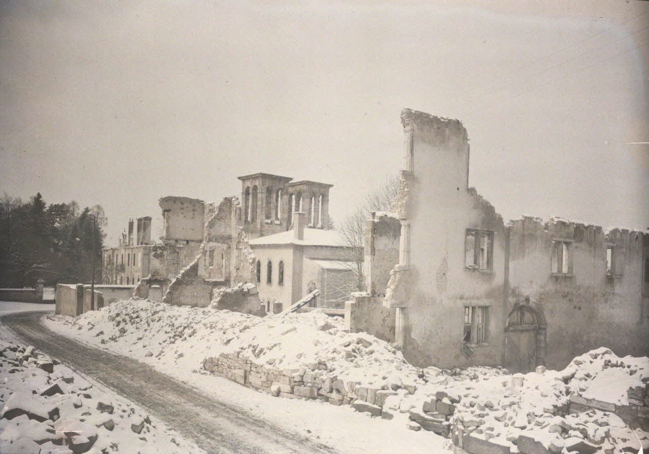 - les ruines et destructions occasionnées par la guerre à Verdun, Reims, Arras ou ailleurs : maisons, églises, cathédrales, lieux symboliques des grandes villes de province en ruines ;