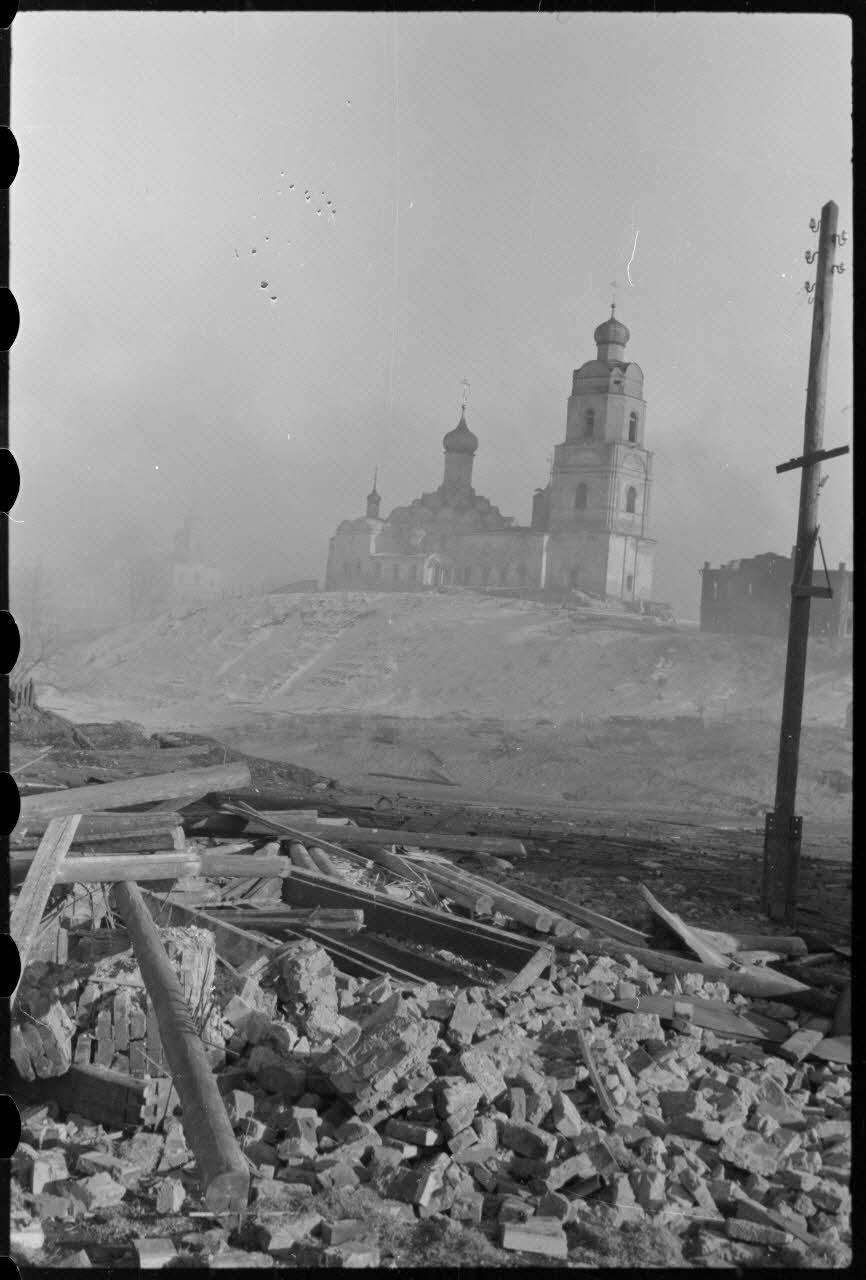 Les ruines de la ville Wjasma (Viazma) encore occupée par l'armée allemande.