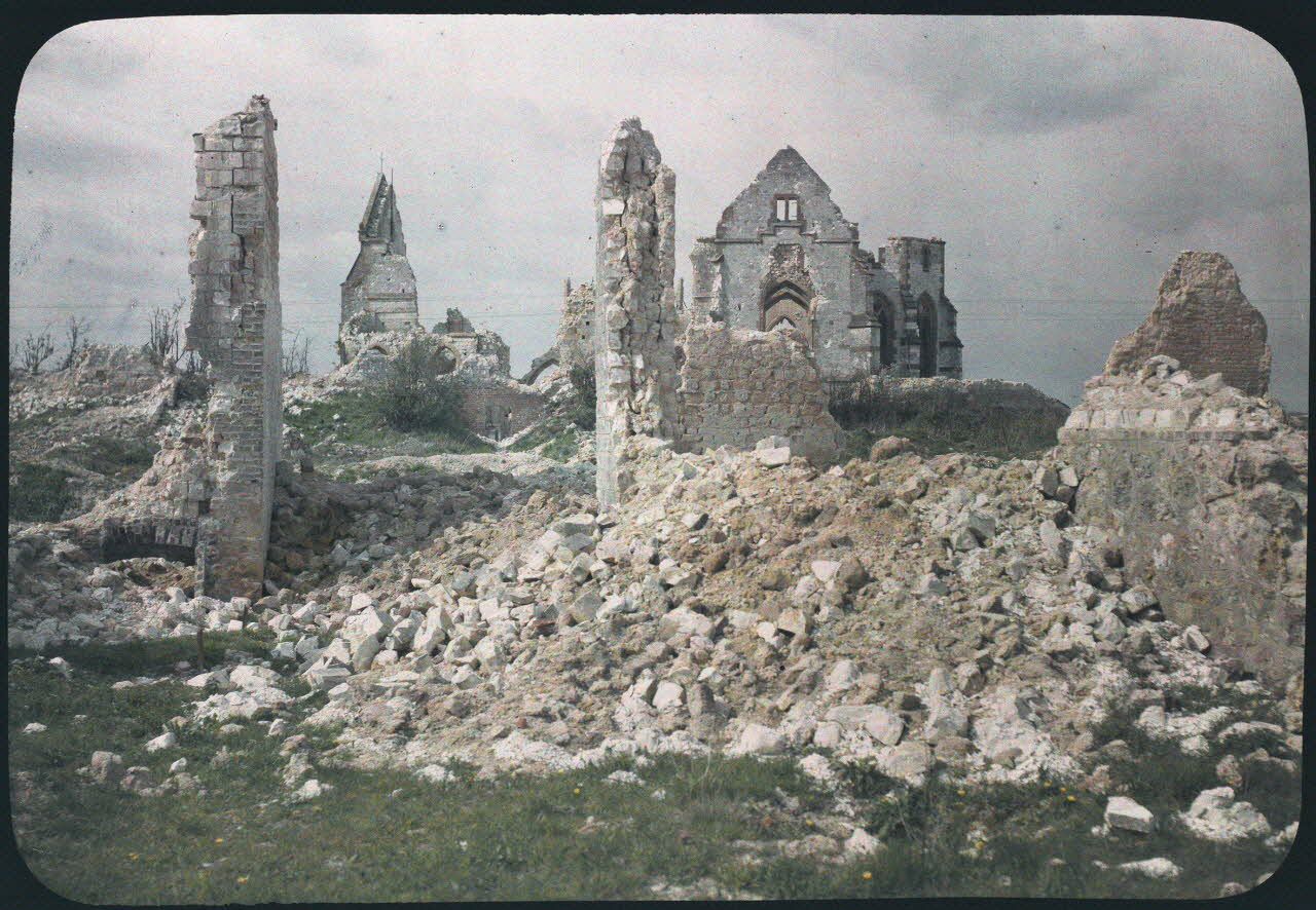 - les ruines et destructions occasionnées par la guerre à Verdun, Reims, Arras ou ailleurs : maisons, églises, cathédrales, lieux symboliques des grandes villes de province en ruines ;