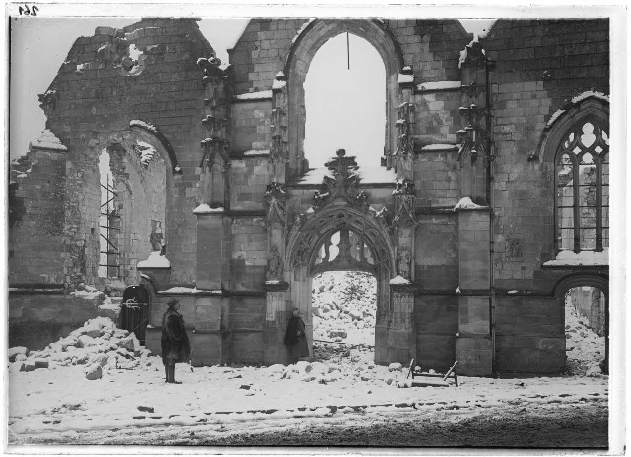 Cathédrale de Soissons. Les Saints de la Crèche relégués dans une chapelle latérale pendant les bombardements. 1918.