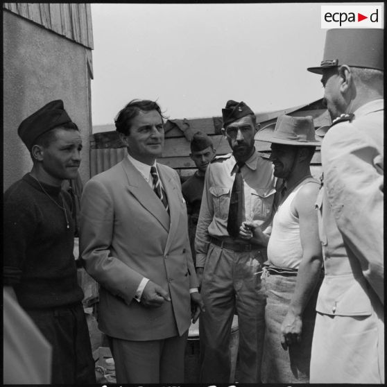 Max Lejeune et le général Lorillot entourés d'autorités militaires au camp de Ben S'Rour.