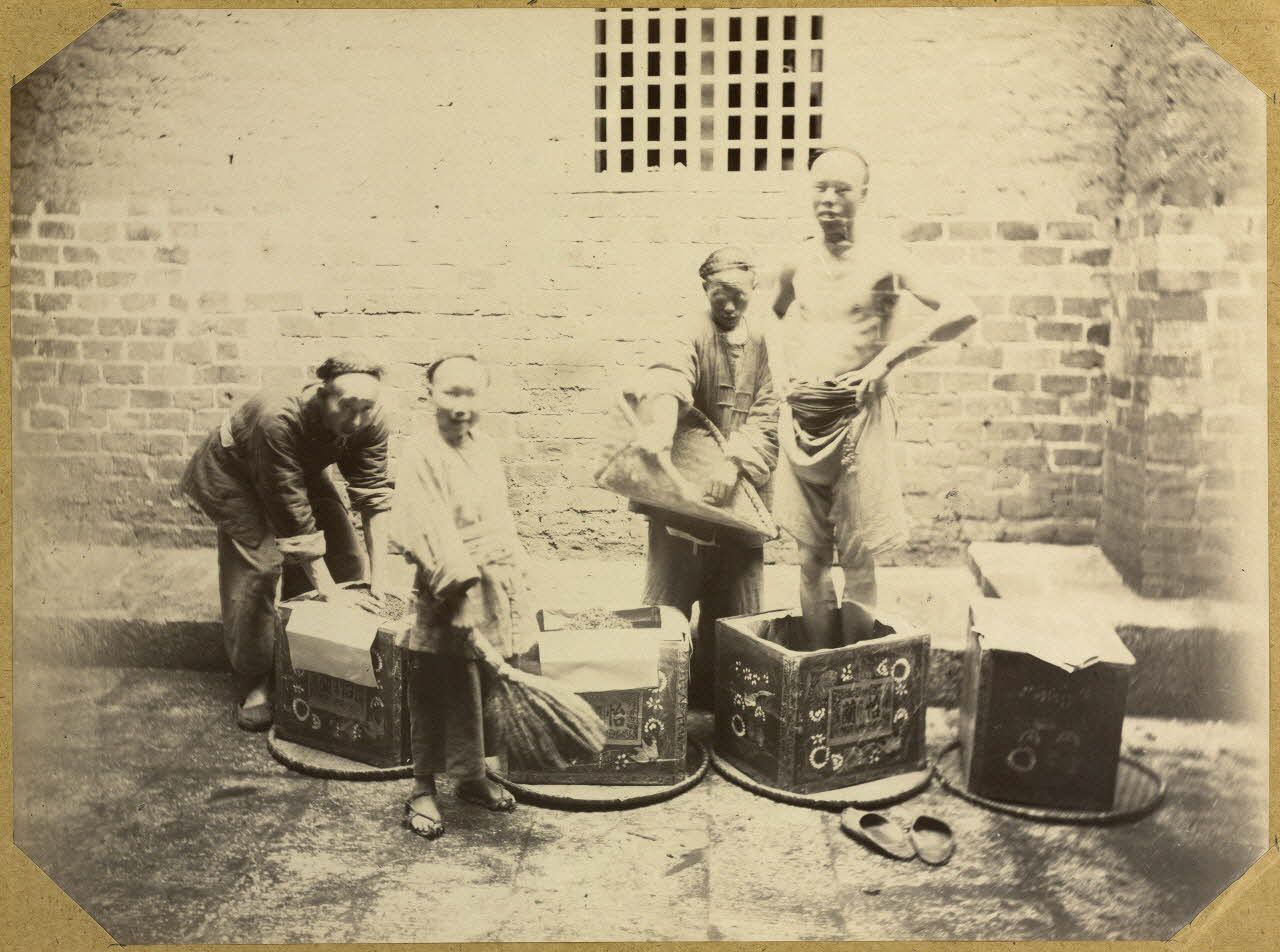 Chine, 1865-1870. Prisonniers portant la cangue.