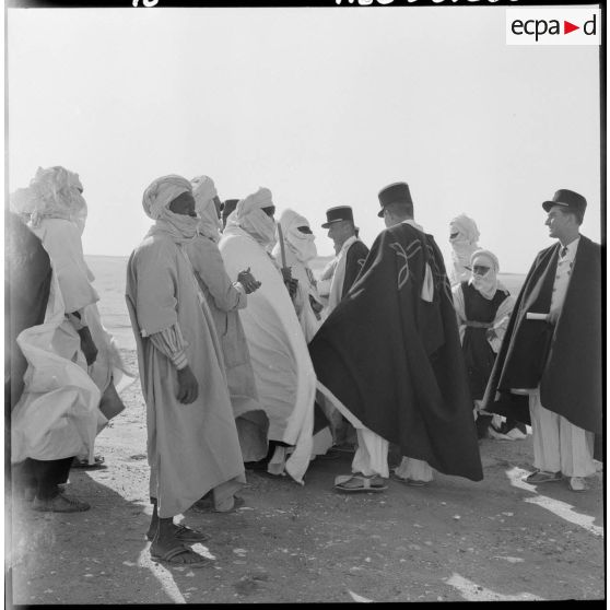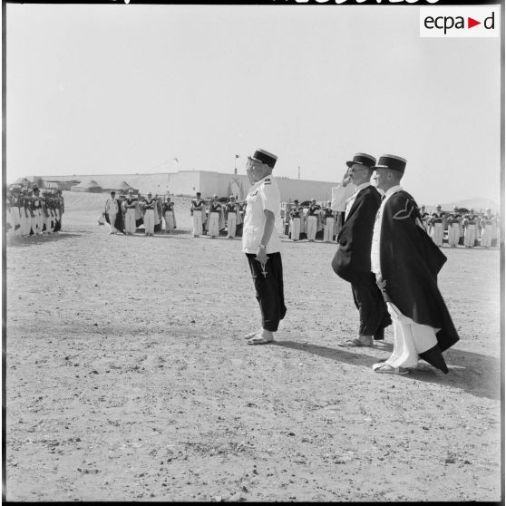 Les habitants du village de Flatters salués par les officiers de la 1ère compagnie saharienne portée de légion (CSPL) habitant au village.