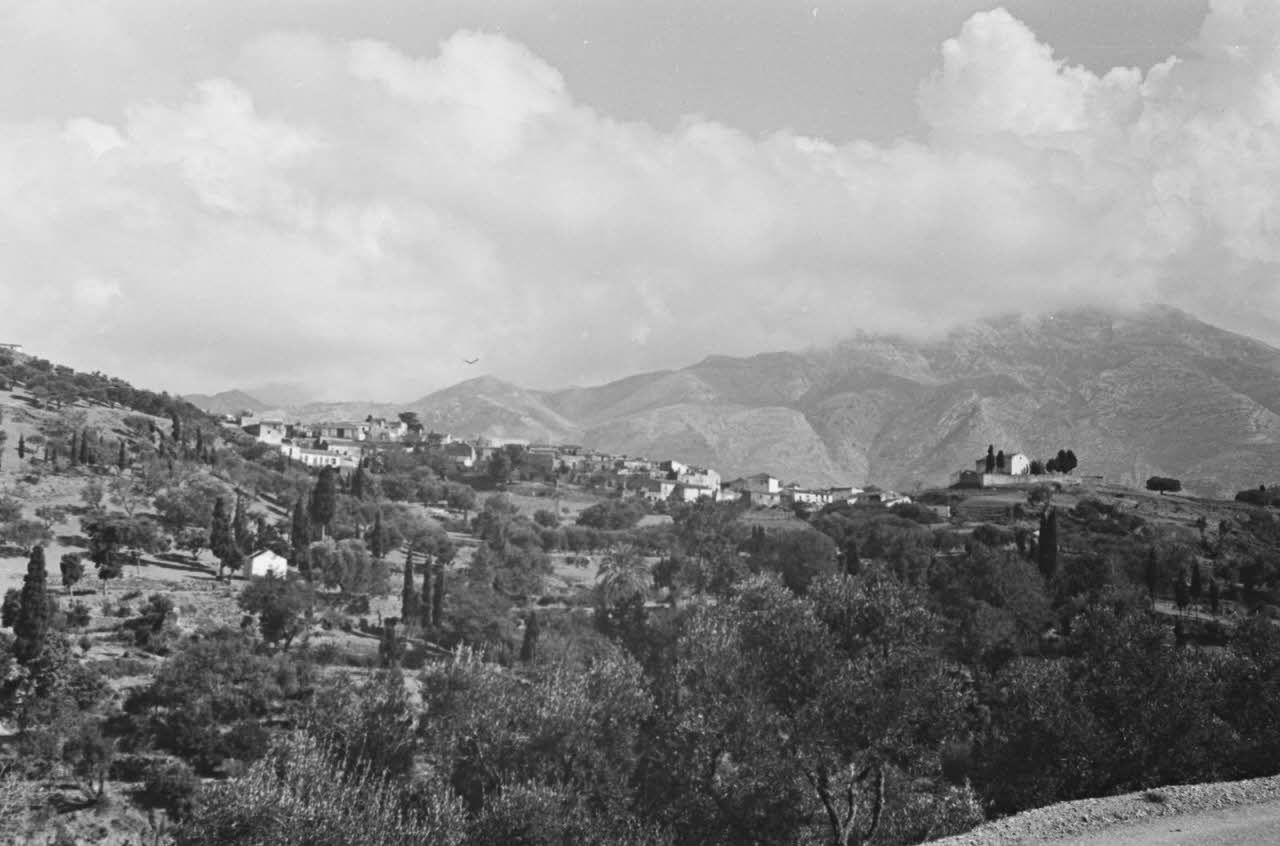 Xidas, ici aussi des soldats de la Luftwaffe sont hébergés en raison du terrain d'aviation tout proche. L'église et les oliviers du village. Fabrication (distillation) d'alcool. Un soldat de la Luftwaffe goûte le Schnaps. Des crétoises filent de la laine de mouton.