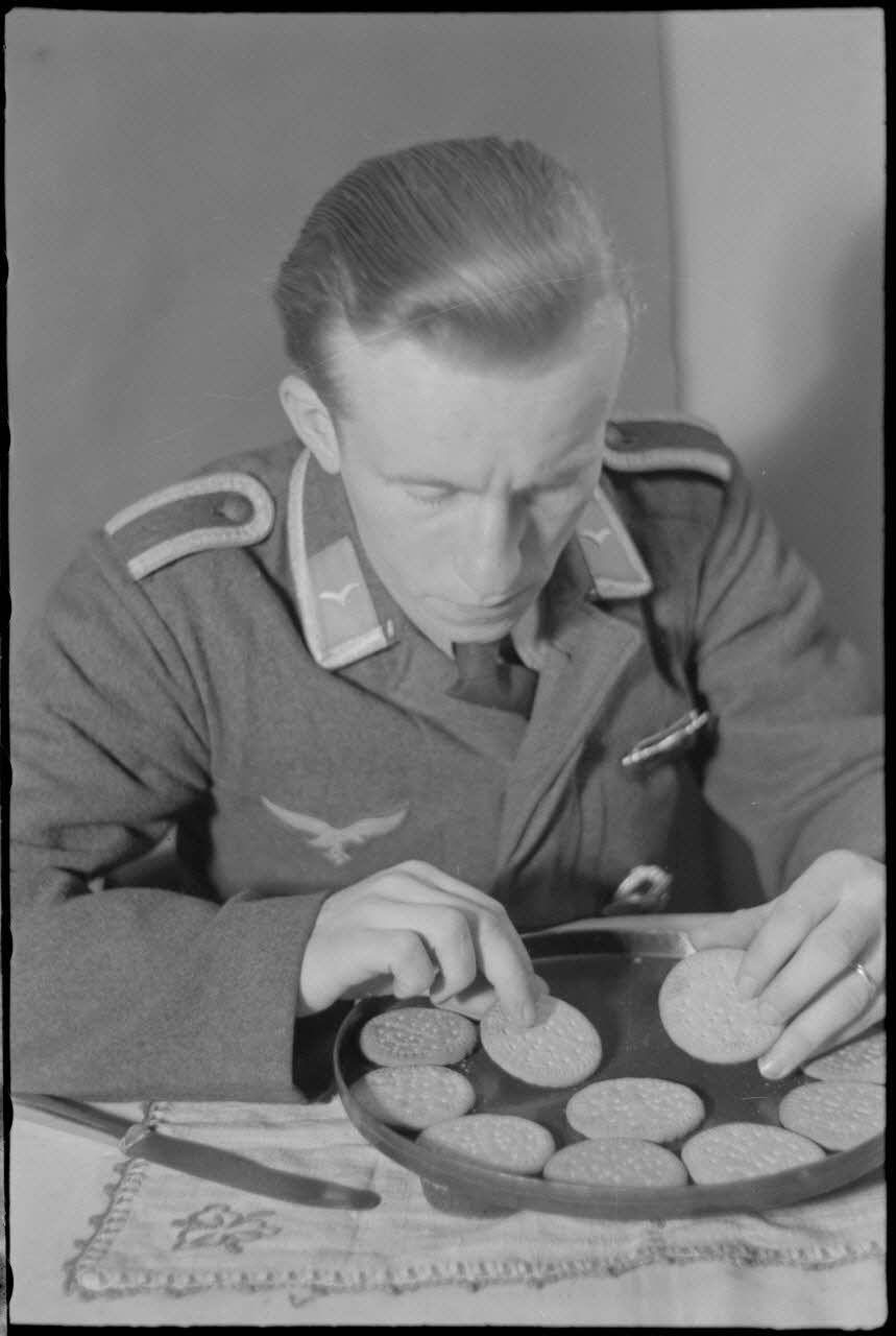 En Crète, dans le secteur de la baie de Souda, dans les quartiers réquisitionnés pour le 2e groupe du Seeaufklärungsgruppe (2./SAGr.125), un sous-officier réalise un gâteau.