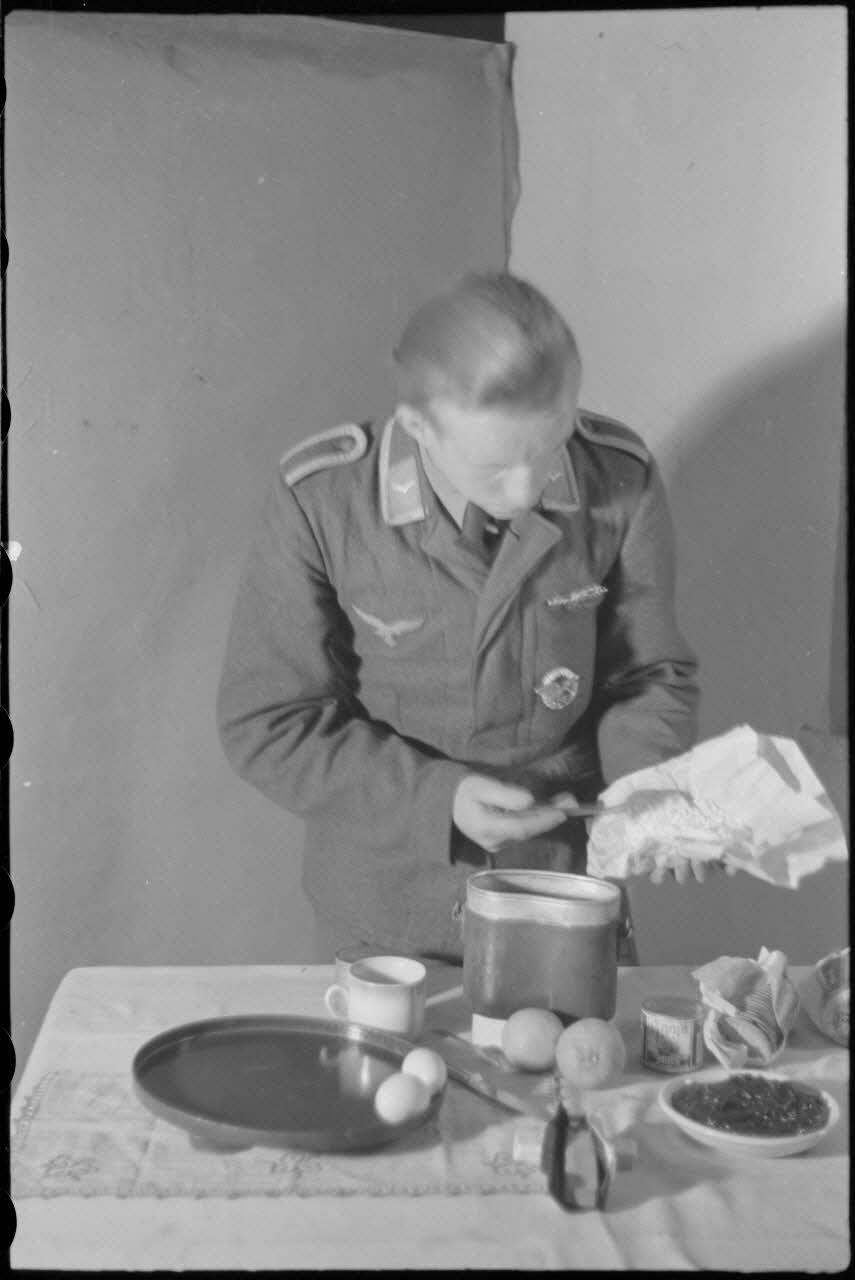 En Crète, dans le secteur de la baie de Souda, dans les quartiers réquisitionnés pour le 2e groupe du Seeaufklärungsgruppe (2./SAGr.125), un sous-officier réalise un gâteau.