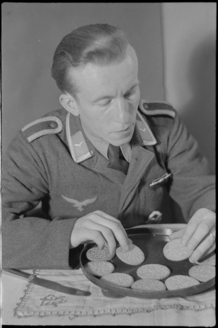 En Crète, dans le secteur de la baie de Souda, dans les quartiers réquisitionnés pour le 2e groupe du Seeaufklärungsgruppe (2./SAGr.125), un sous-officier réalise un gâteau.