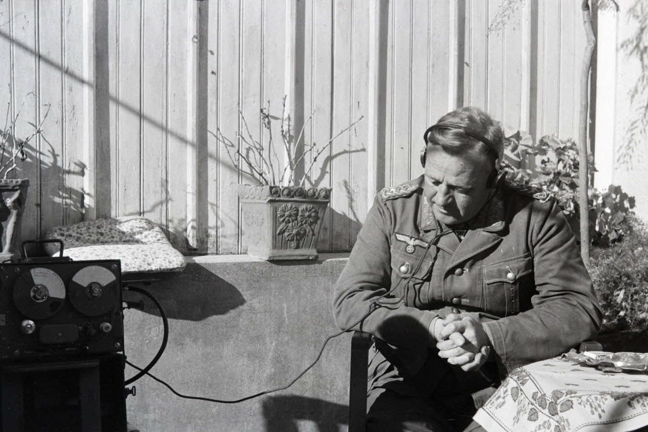 Deux reporters réalisent une interview (un entretien) du général Müller et du Major (commandant) von Saldern. L'un des reporters pourrait être Lothar Schlebusch qui est l'auteur d'un article intitulé "Ritterkreuz für Major von Saldern, Der siegreiche Kampf auf Leros fand seine Anerkennung".