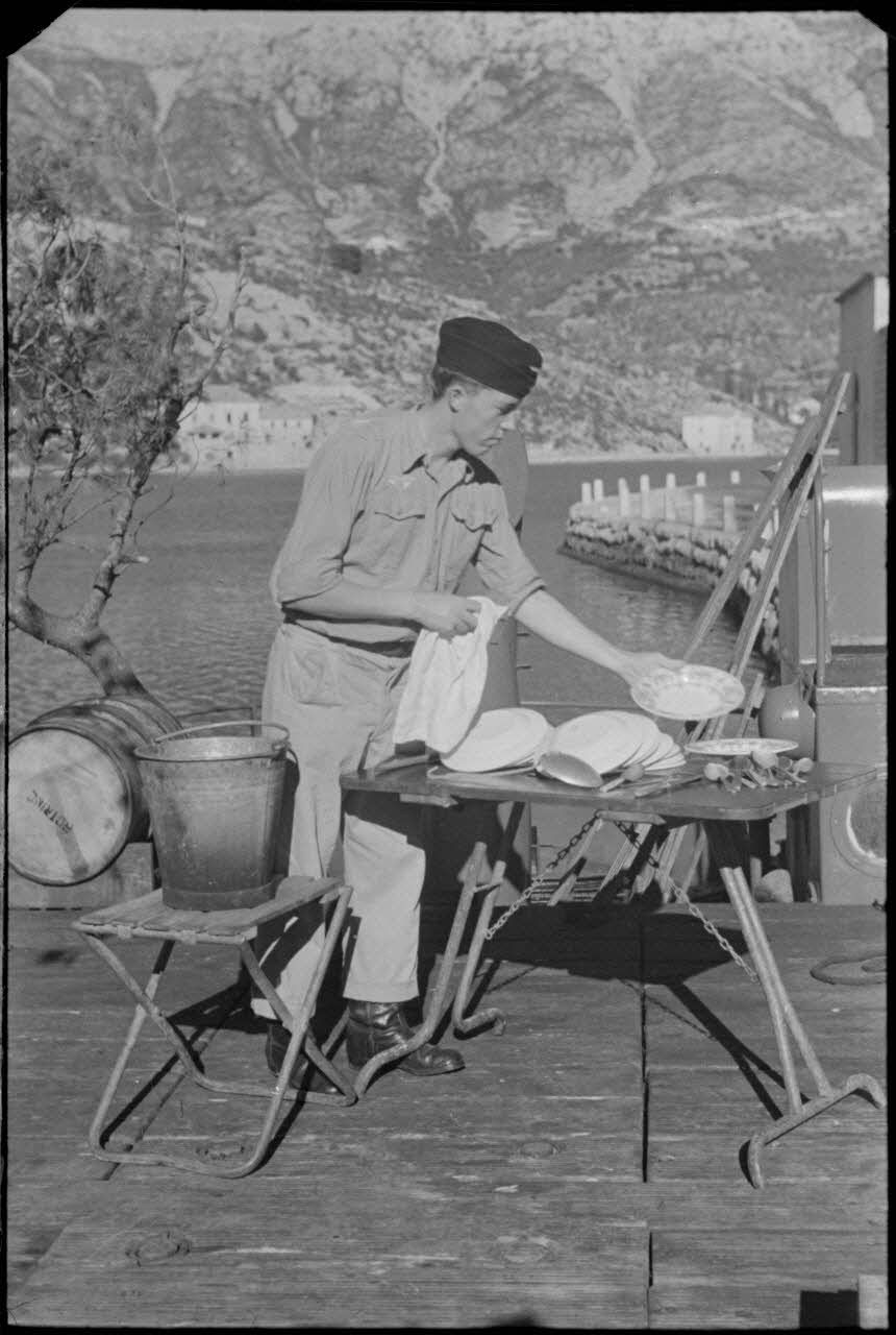 En Crète, les activités de la marine allemande en charge de la défense antiaérienne d'un port.