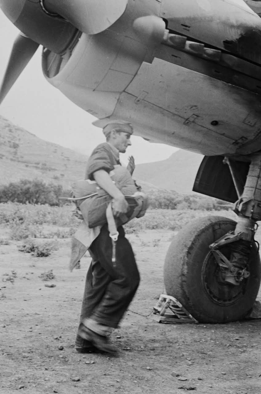 En Crète, les préparatifs d'un équipage d'un Junkers Ju-88 du 2.(F)/123 et de l'équipement individuel (parachute).