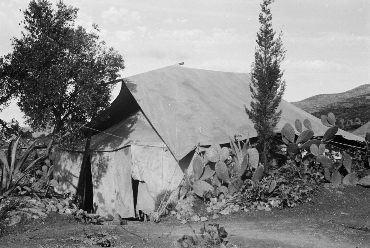 En Crète, des artilleurs de la FlaK assemblent des tentes.
