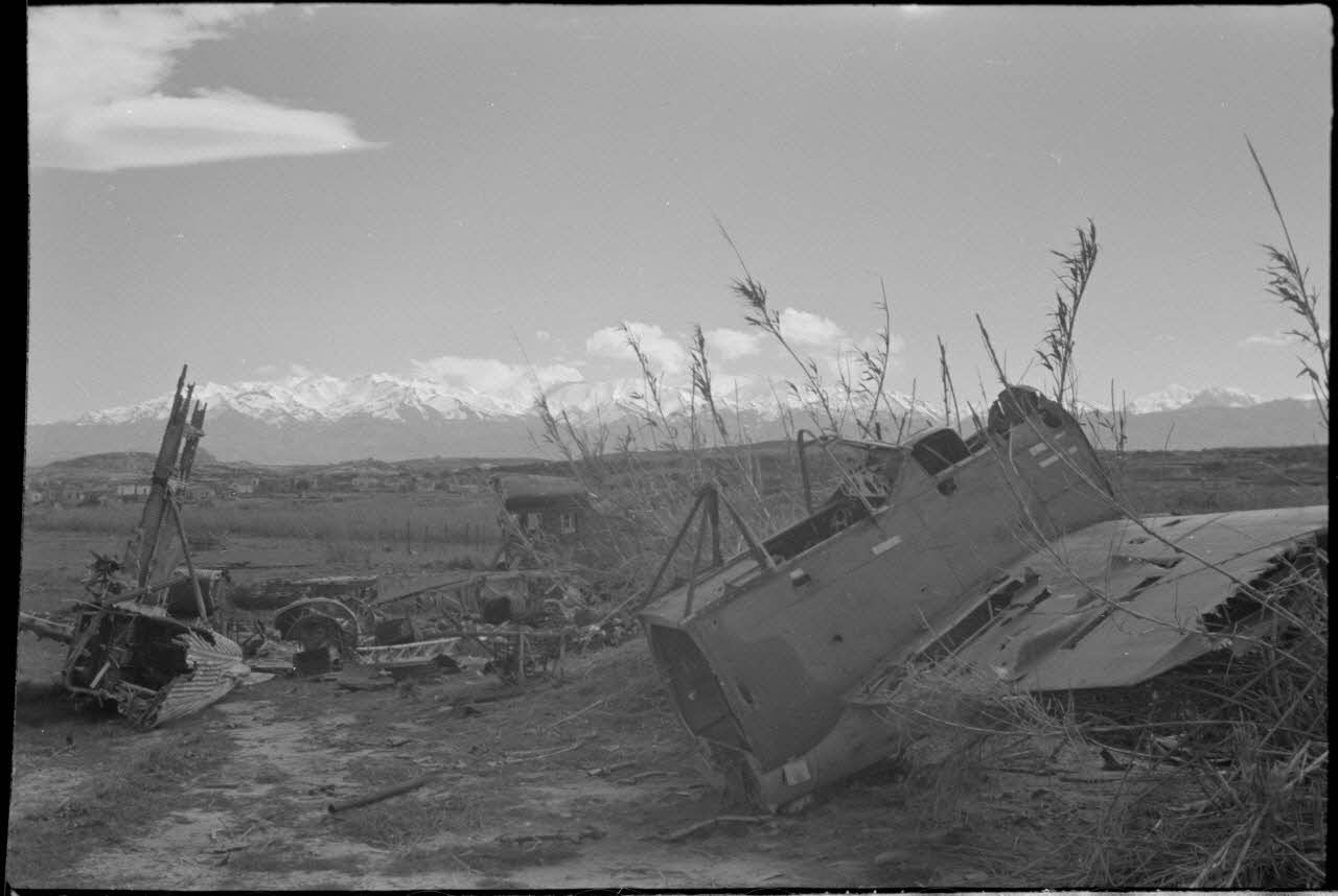 En Crète, sur le terrain d'aviation de Maleme, les débris d'avions britanniques et allemands.