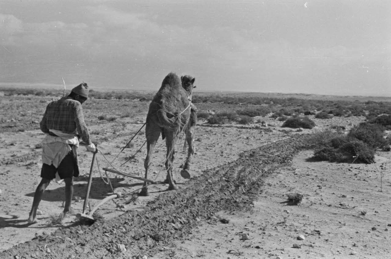 En Egypte, à 100 kilomètres du front d'El Alamein, des travaux agraires à l'aide d'un dromadaire.