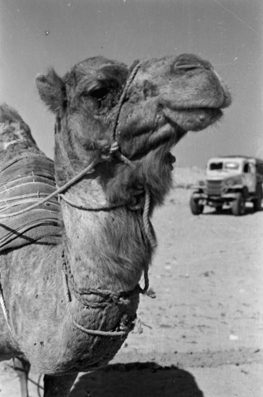 En Egypte, à 100 kilomètres du front d'El Alamein, des travaux agraires à l'aide d'un dromadaire.