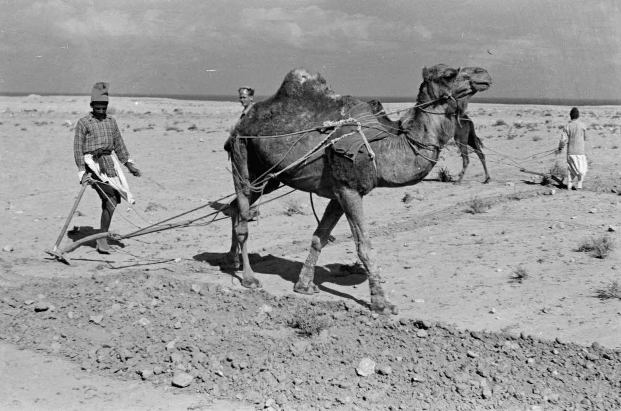 En Egypte, à 100 kilomètres du front d'El Alamein, des travaux agraires à l'aide d'un dromadaire.