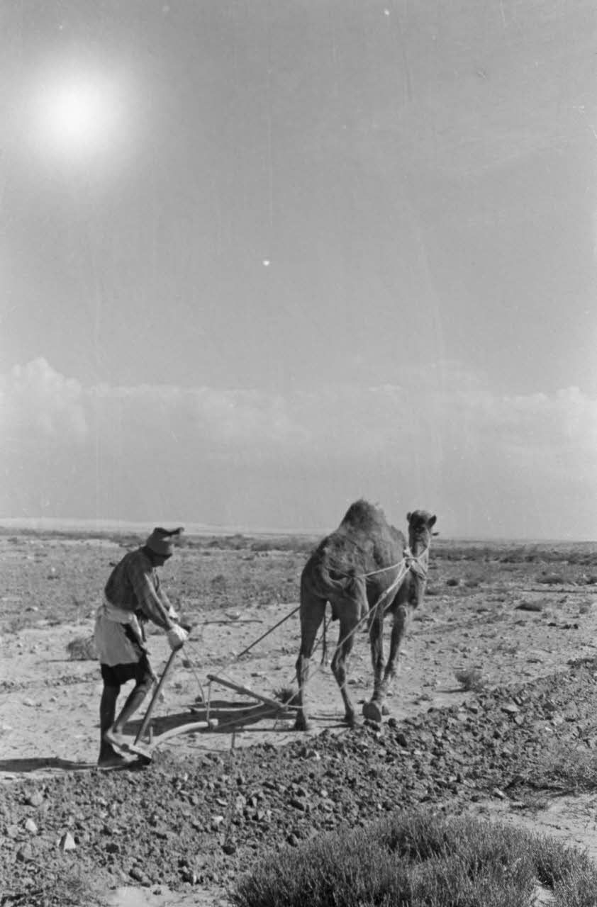 En Egypte, à 100 kilomètres du front d'El Alamein, des travaux agraires à l'aide d'un dromadaire.