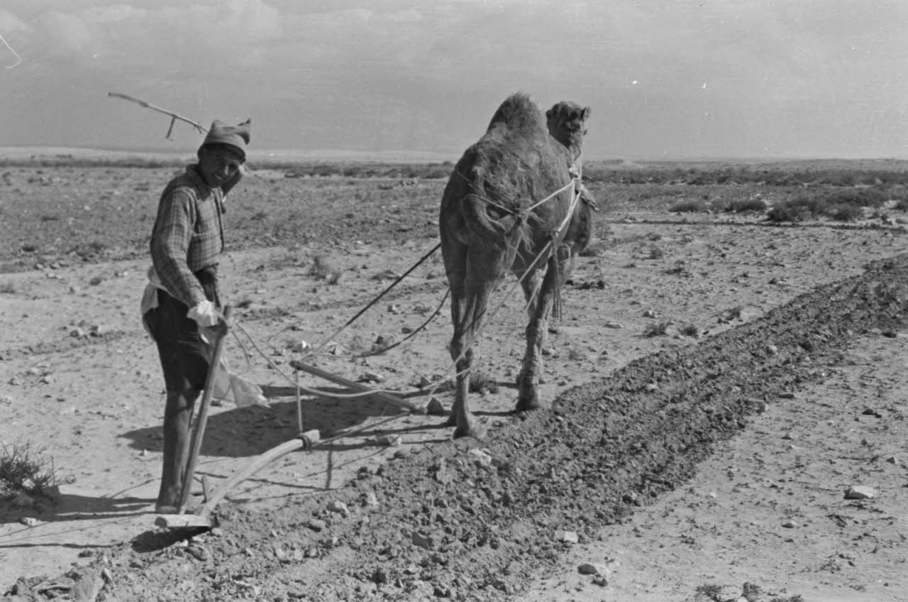 En Egypte, à 100 kilomètres du front d'El Alamein, des travaux agraires à l'aide d'un dromadaire.